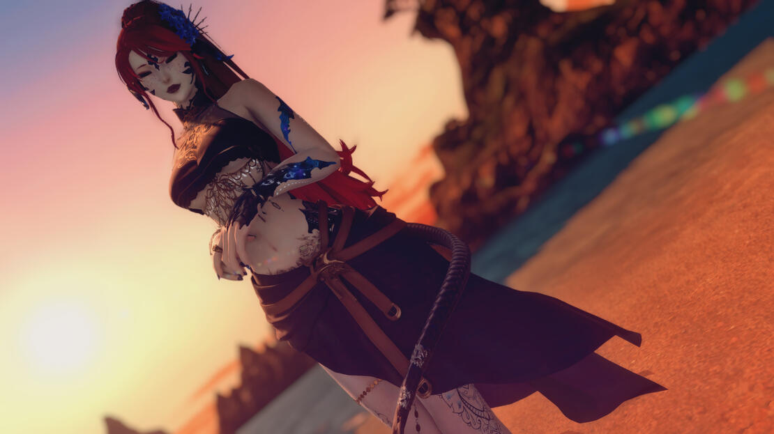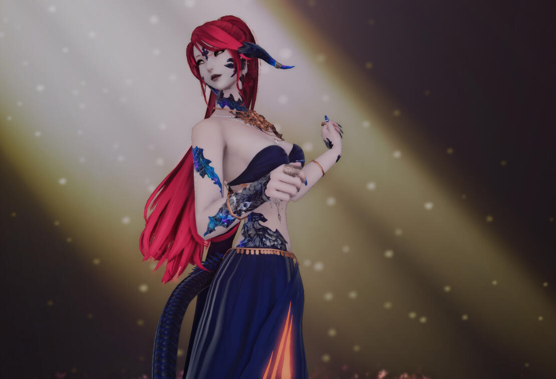 Born to a family of horse tamers and trainers, a path that has been passed down for generations, Kaede is the eldest child of seven, with four sisters and two brothers following her. Both of her parents are still alive and well and run the family business in conjunction with others of their tribe. Her childhood was not difficult, but did come with its own challenges and pains, with her parents being extremely judgmental and controlling of each child's life. Their wealth and position are of utmost importance and anything that threatens continuing their generational history warrants swift removal from their lives. Kaede's life was planned for her, as was the life of each sibling, from the time she was two - an arranged marriage to another tribal family for an alliance coming with political and financial gains, her duties and job already decided for her as well once she was of age and after she married. Financial advisors were commonly involved in their household for various meetings, and Kaede found herself growing more distasteful and resentful of her life with each year that passed. The small Xaela tried to find joy in things, like exploring their homeland with her siblings, venturing slightly outside of it at times if they were certain they could without punishment, and talking to travellers who arrived from other places. Her passion for the stars grew each night she spent beneath them, and in time she learned from scholars of the other worlds each star represented, which only served to make her love them even more.Upon reaching the age of maturity, instead of obeying the life planned for her, Kaede decided to take whatever funds had been set aside for her inheritance, and left her home and family behind. While not dead to her family, she no longer has any ties to their wealth or business and is more of an extended family member or family friend than their daughter, until conversations come up that she is reminded otherwise. Three of her siblings followed her suit, taking what they could of their own inheritance and setting off as well. Originally, the four ventured together from place to place, learning and immersing themselves in varyign cultures and lifestyles until they discovered what moved them, what sparked life. Kaede would stay behind in Gridania after some time while her siblings dispersed to Ul'dah and Limsa, pursuing various jobs and trades of their own that spoke to them more than horsework ever did.Kaede started off working with archers in Gridania, but over time she found the work to be repetitive and unchallenging for her, excelling in it with rather quick ease. Back to adventuring, the woman found herself in taverns and bars, trading drinks for knowledge and wit, betting coin on games of Triad and chess, and found herself in the company of a group of Veena Viera who took her to Thavnair and showed her the world of dance, shaping her into a quick-footed and flexible mover. Coupled with her archery skills, she poured her heart into dance and found herself travelling to perform or work as needed and wanted, occasionally dabbling in animal handling and bonding as needs arose too.Most recently, she has taken to exploring, studying, and trying to learn as much as she can about the world around her as well as arts, magicks, and melee fighting to develop herself into a more impactful individual. Her days are spent writing, reading, people watching, or dancing on beaches or in forests, so keep an eye out for the starry-scaled Xaela!