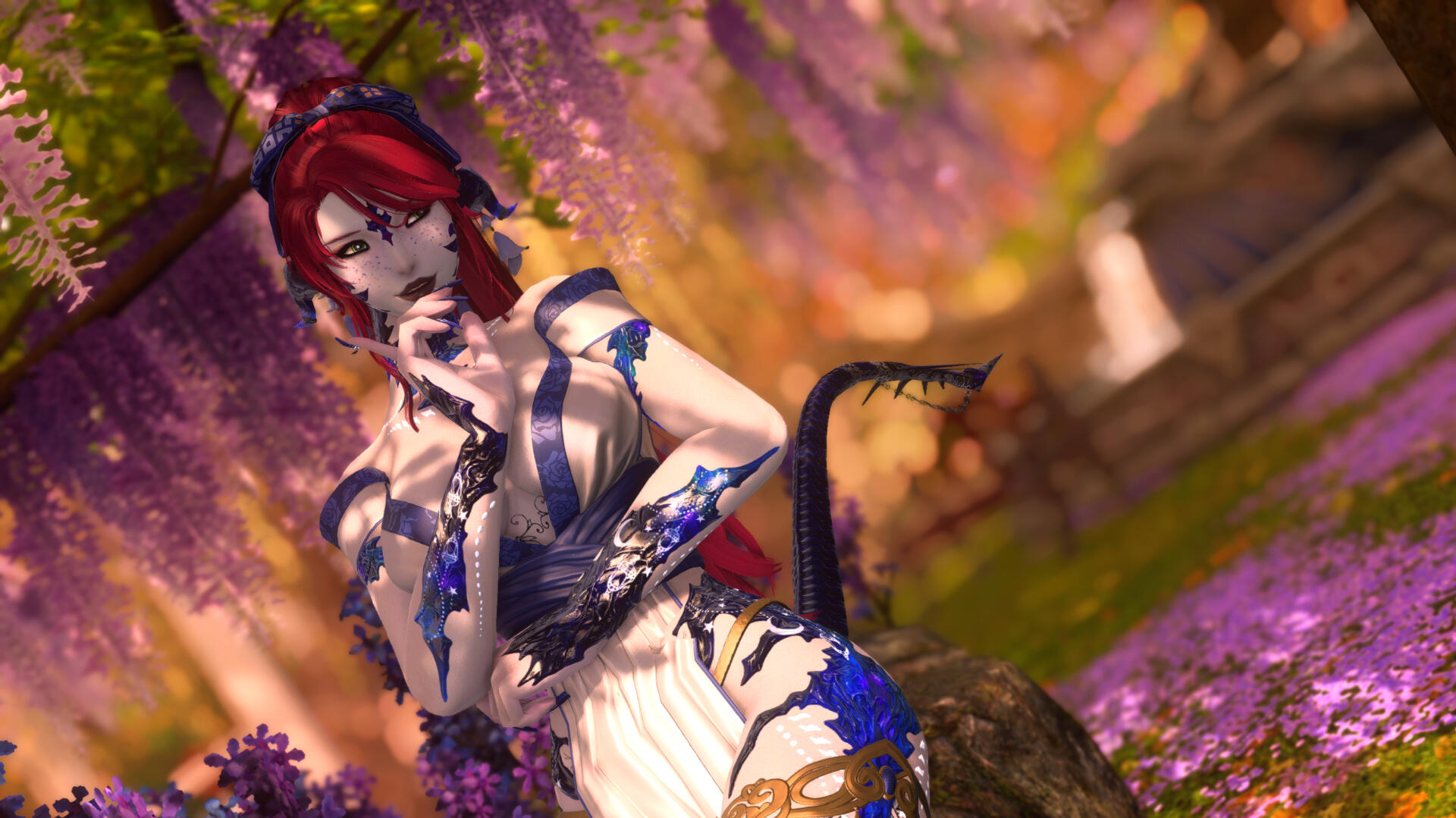 Born to a family of horse tamers and trainers, a path that has been passed down for generations, Kaede is the eldest child of seven, with four sisters and two brothers following her. Both of her parents are still alive and well and run the family business in conjunction with others of their tribe. Her childhood was not difficult, but did come with its own challenges and pains, with her parents being extremely judgmental and controlling of each child's life. Their wealth and position are of utmost importance and anything that threatens continuing their generational history warrants swift removal from their lives. Kaede's life was planned for her, as was the life of each sibling, from the time she was two - an arranged marriage to another tribal family for an alliance coming with political and financial gains, her duties and job already decided for her as well once she was of age and after she married. Financial advisors were commonly involved in their household for various meetings, and Kaede found herself growing more distasteful and resentful of her life with each year that passed. The small Xaela tried to find joy in things, like exploring their homeland with her siblings, venturing slightly outside of it at times if they were certain they could without punishment, and talking to travellers who arrived from other places. Her passion for the stars grew each night she spent beneath them, and in time she learned from scholars of the other worlds each star represented, which only served to make her love them even more.Upon reaching the age of maturity, instead of obeying the life planned for her, Kaede decided to take whatever funds had been set aside for her inheritance, and left her home and family behind. While not dead to her family, she no longer has any ties to their wealth or business and is more of an extended family member or family friend than their daughter, until conversations come up that she is reminded otherwise. Three of her siblings followed her suit, taking what they could of their own inheritance and setting off as well. Originally, the four ventured together from place to place, learning and immersing themselves in varyign cultures and lifestyles until they discovered what moved them, what sparked life. Kaede would stay behind in Gridania after some time while her siblings dispersed to Ul'dah and Limsa, pursuing various jobs and trades of their own that spoke to them more than horsework ever did.Kaede started off working with archers in Gridania, but over time she found the work to be repetitive and unchallenging for her, excelling in it with rather quick ease. Back to adventuring, the woman found herself in taverns and bars, trading drinks for knowledge and wit, betting coin on games of Triad and chess, and found herself in the company of a group of Veena Viera who took her to Thavnair and showed her the world of dance, shaping her into a quick-footed and flexible mover. Coupled with her archery skills, she poured her heart into dance and found herself travelling to perform or work as needed and wanted, occasionally dabbling in animal handling and bonding as needs arose too.Most recently, she has taken to exploring, studying, and trying to learn as much as she can about the world around her as well as arts, magicks, and melee fighting to develop herself into a more impactful individual. Her days are spent writing, reading, people watching, or dancing on beaches or in forests, so keep an eye out for the starry-scaled Xaela!