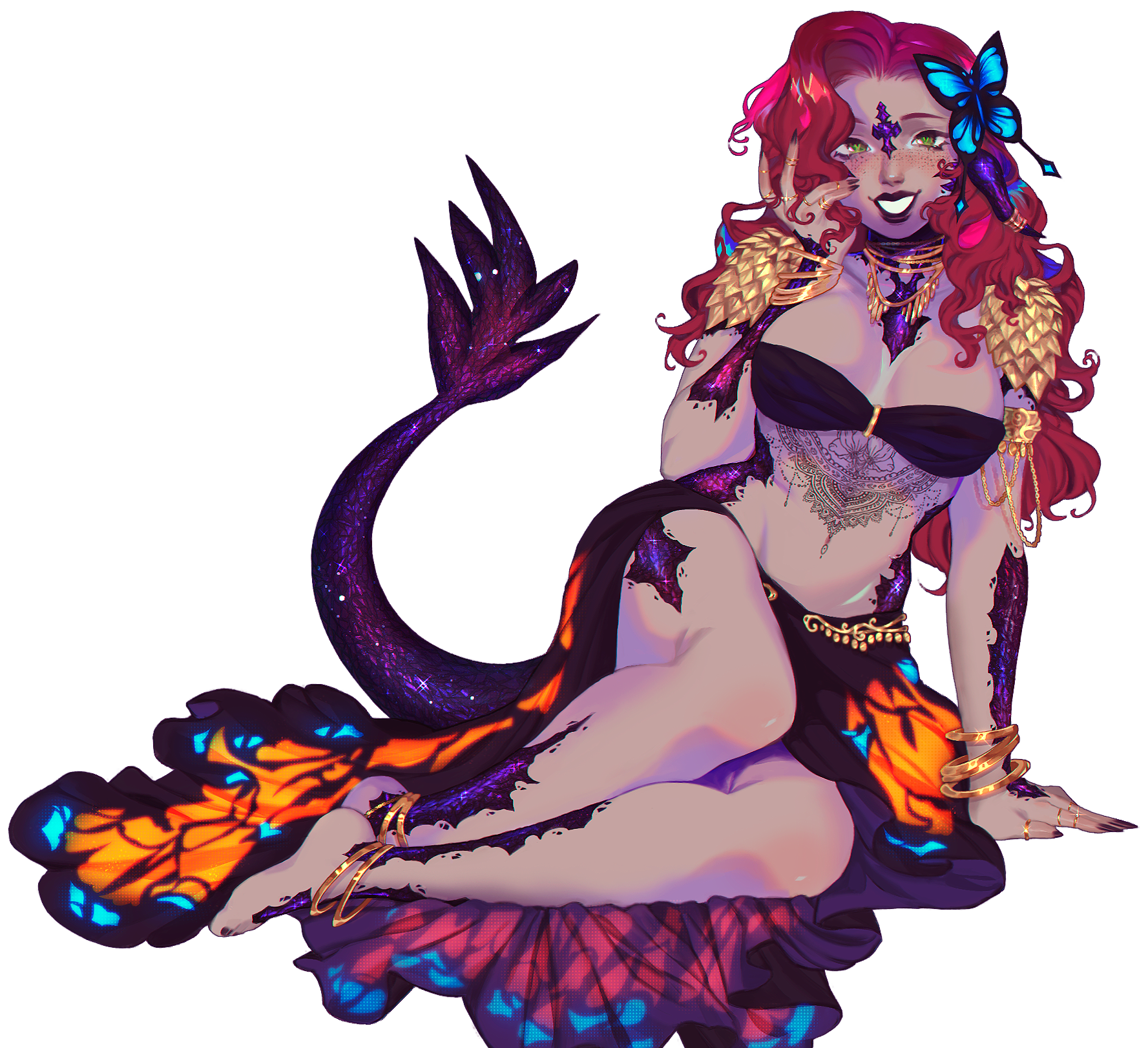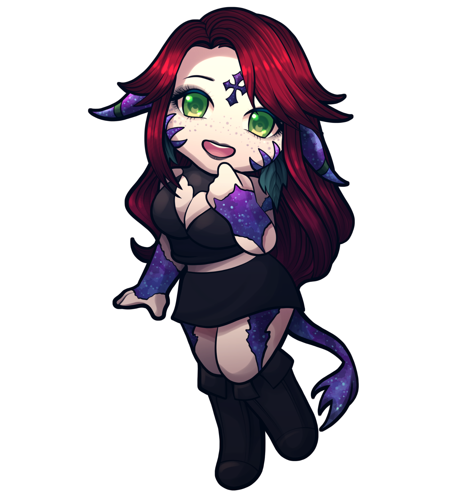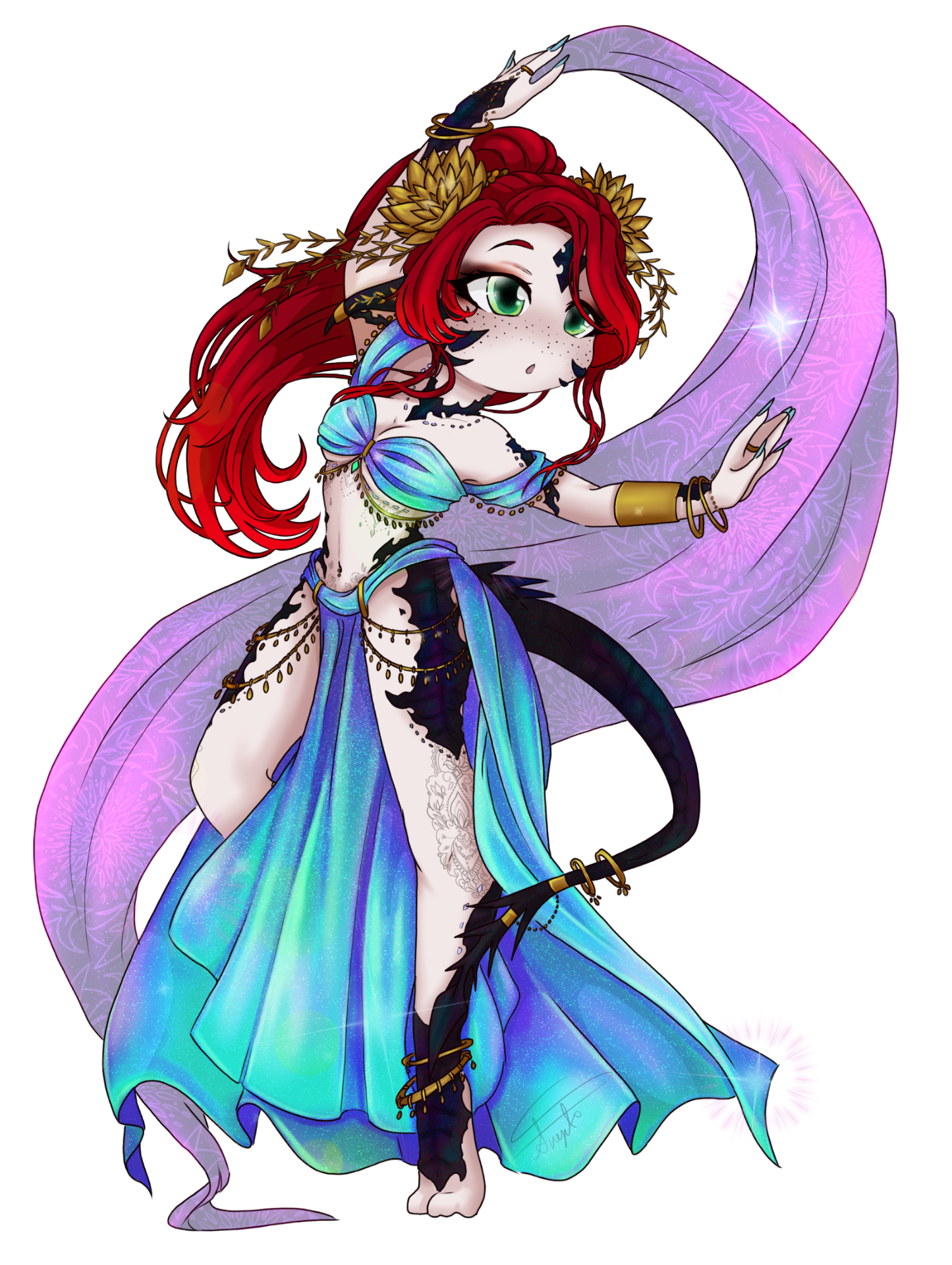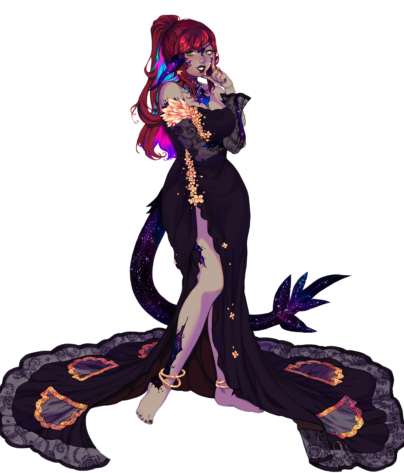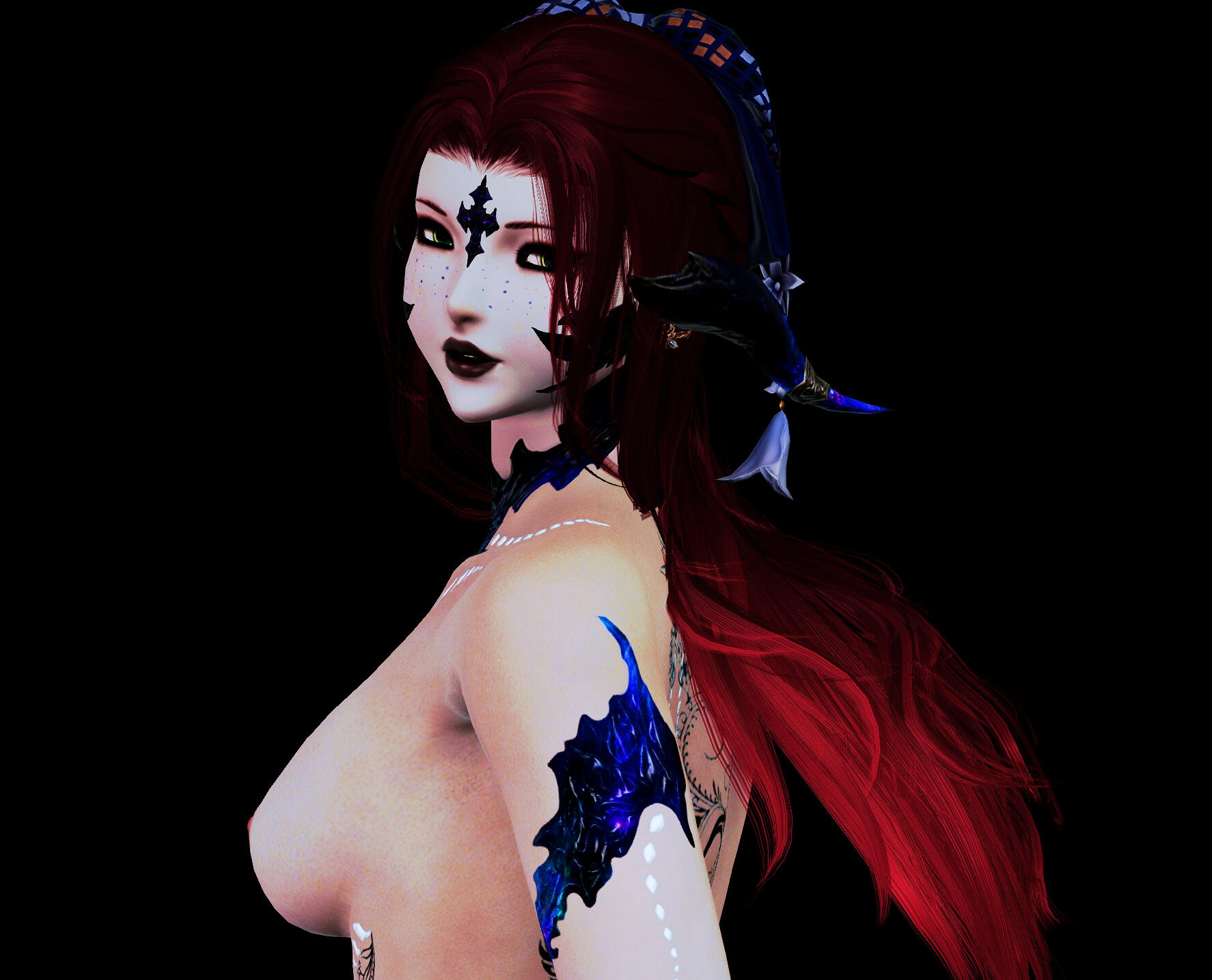 ** A very important note regarding her scales... While they are galactic in nature, sparkly and very noticeable, she can have them hidden in public with magics. As of late, she's had them out and exposed alongside her intricate tattoos. If you wish to use this for RP, just send a tell to confirm :)